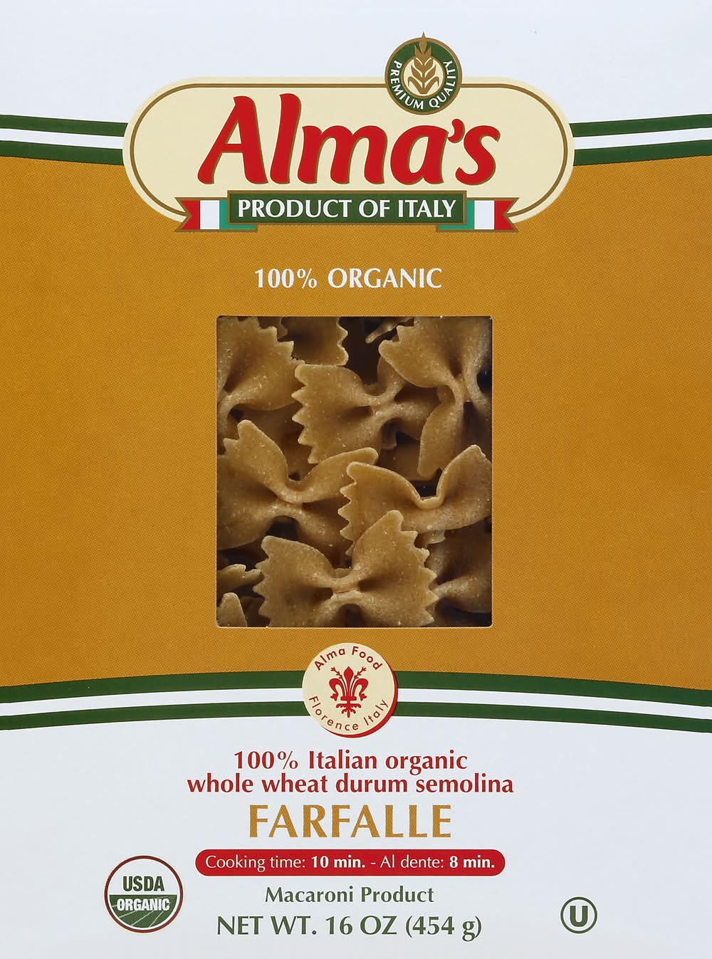 Alma's Italian Organic Whole Wheat Durum Semolina Farfalle (16 oz)