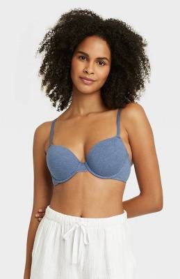 Auden Female Cotton Lightly Lined Demi T-Shirt Bra, 38C, Navy Heather