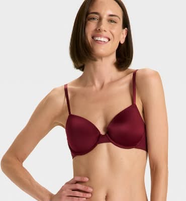 Auden Demi T-Shirt Push-Up Bra, Women, 34B, Berry Red