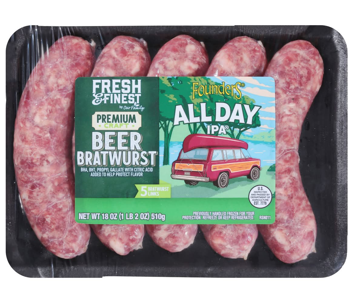 Fresh & Finest by Our Family Primium Craft Founders All Day Ipa Beer Brats (18 oz, 5 ct)