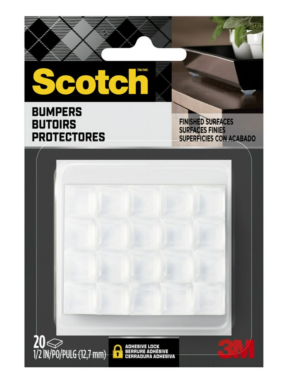 Scotch Square Rubber Cabinet Bumpers, 1/2 in, Clear (20 ct)