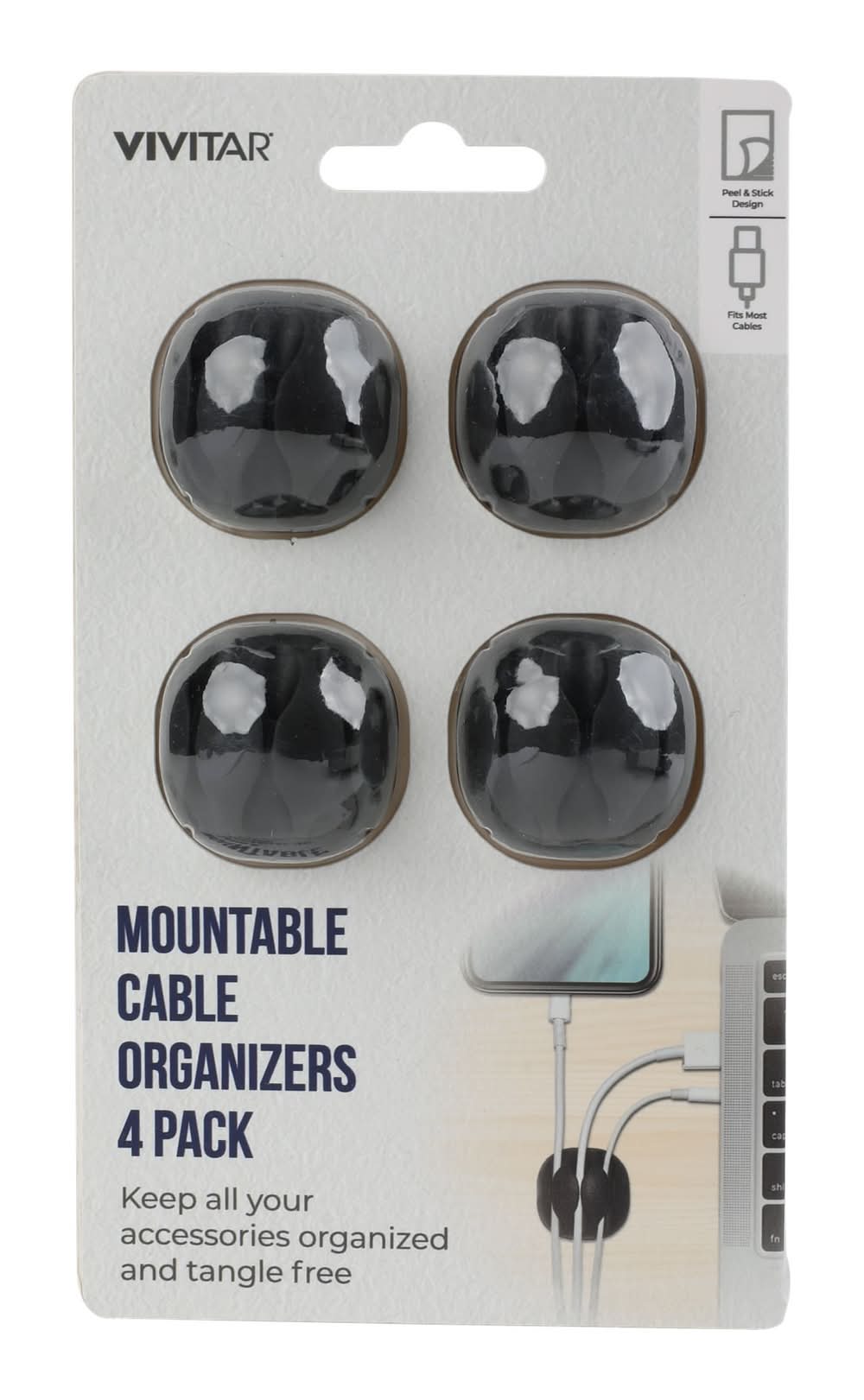 Vivitar Mountable Cable Organizers, Black (4 ct)