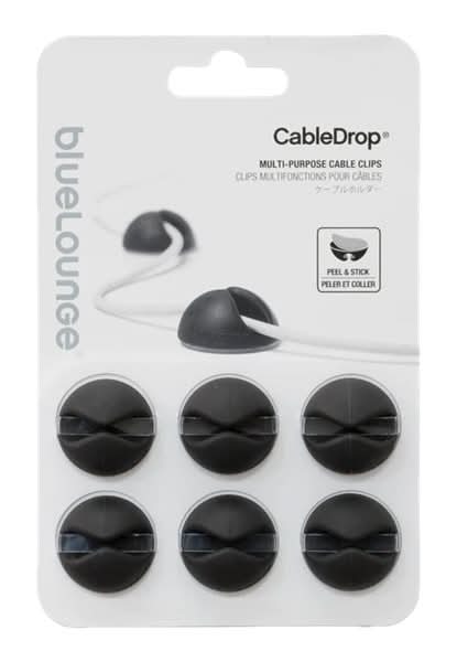 Bluelounge Cabledrop Multi Purpose Cable Clips, Black (6 ct)