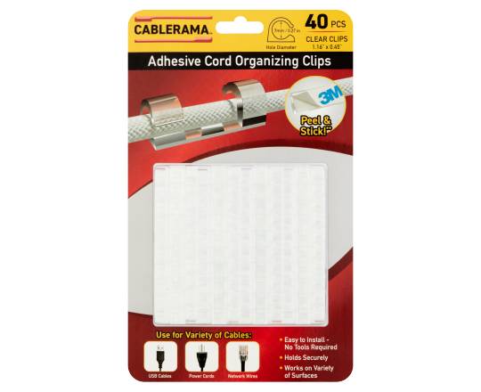 Cablerama Adhesive Cord Organizing Clips, 1.16'' X 0.45'', Clear (40 ct)