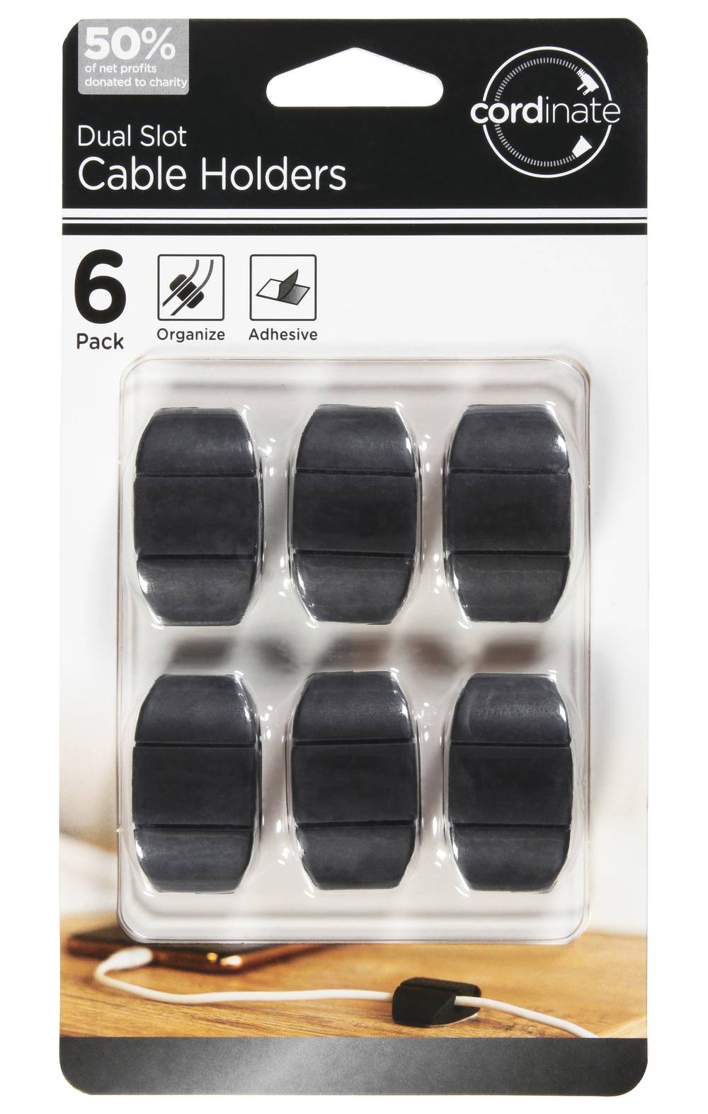 Cordinate Dual Slot Cable Holders, Black (6 ct)