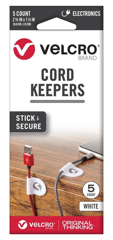 Velcro Stick & Secure Cord Keepers, 6.6x2.8 cm, White (5 ct)