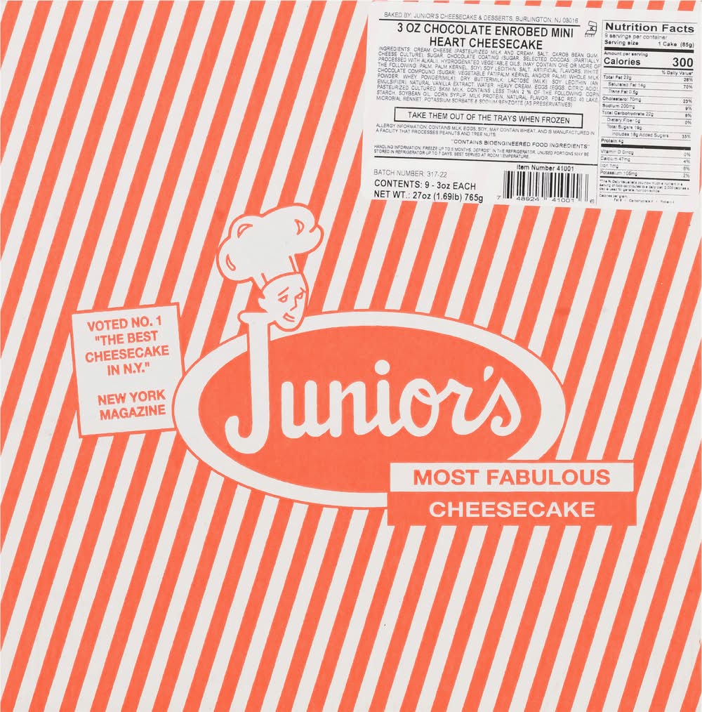 Junior's Chocolate Enrobed Mini Heart Cheesecake (3 oz, 9 ct)