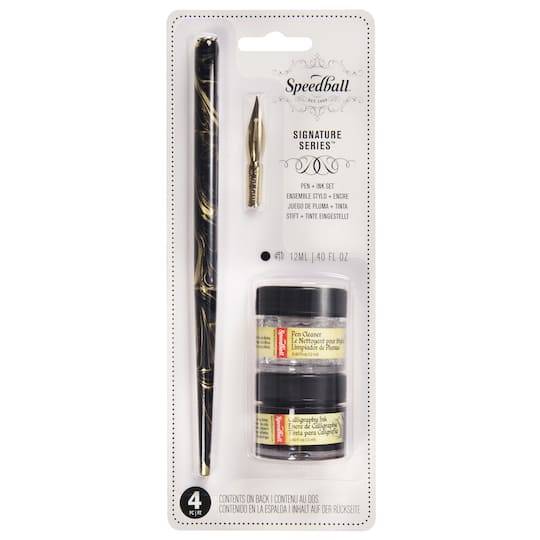 Speedball Signature Series Calligraphy Pen & Ink Set, Black (40 fl oz, 4 ct)