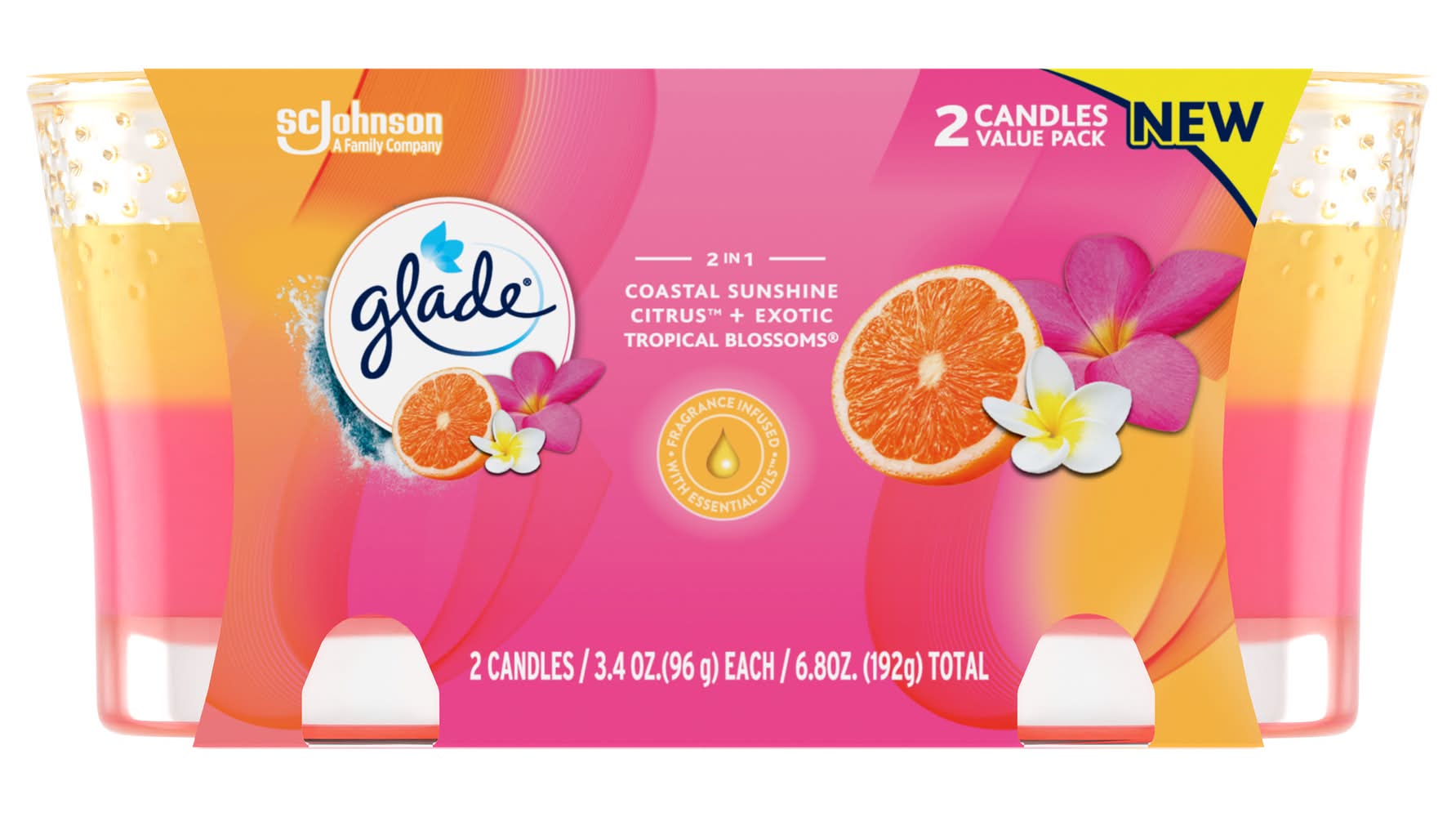 Glade Jar Candle Air Freshener Coastal Sunshine Citrus & Exotic Tropical Blossom (6.8 oz, 2 ct)