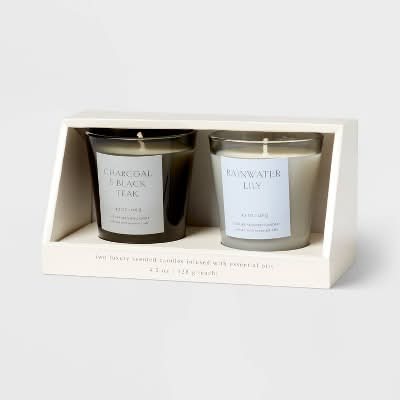 Threshold Votive Candle Gift Set, Rainwater Lily-Charcoal & Black Teak (2 x 4.5 oz)