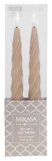 Mikasa Twisted Flute Led Wax Taper Candle, 1x10 in, Gray (2 ct)
