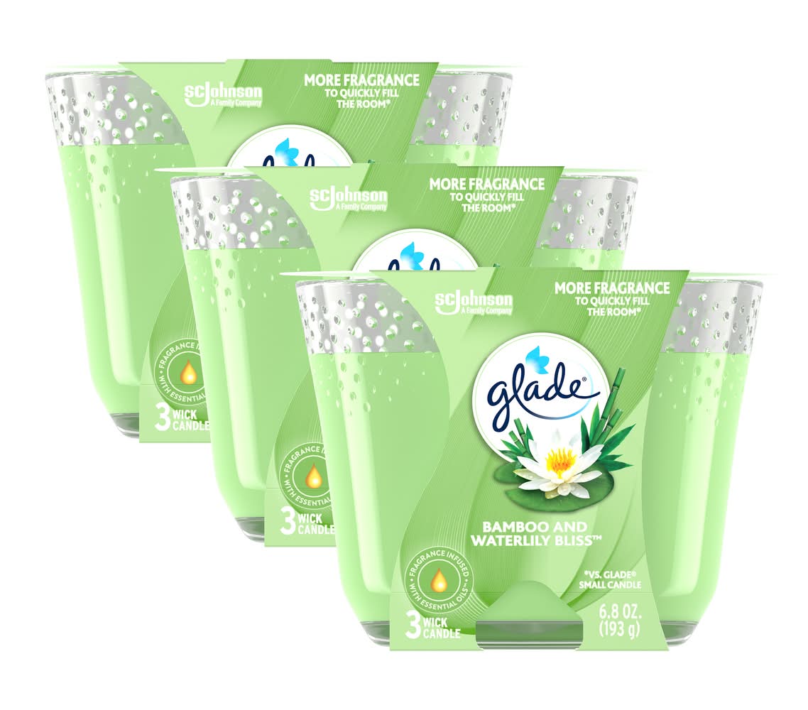 Glade 3 Wick Candle Scented Candles Bamboo & Waterlily Bliss, 3 X 6.8 (3 x 6.8 oz)