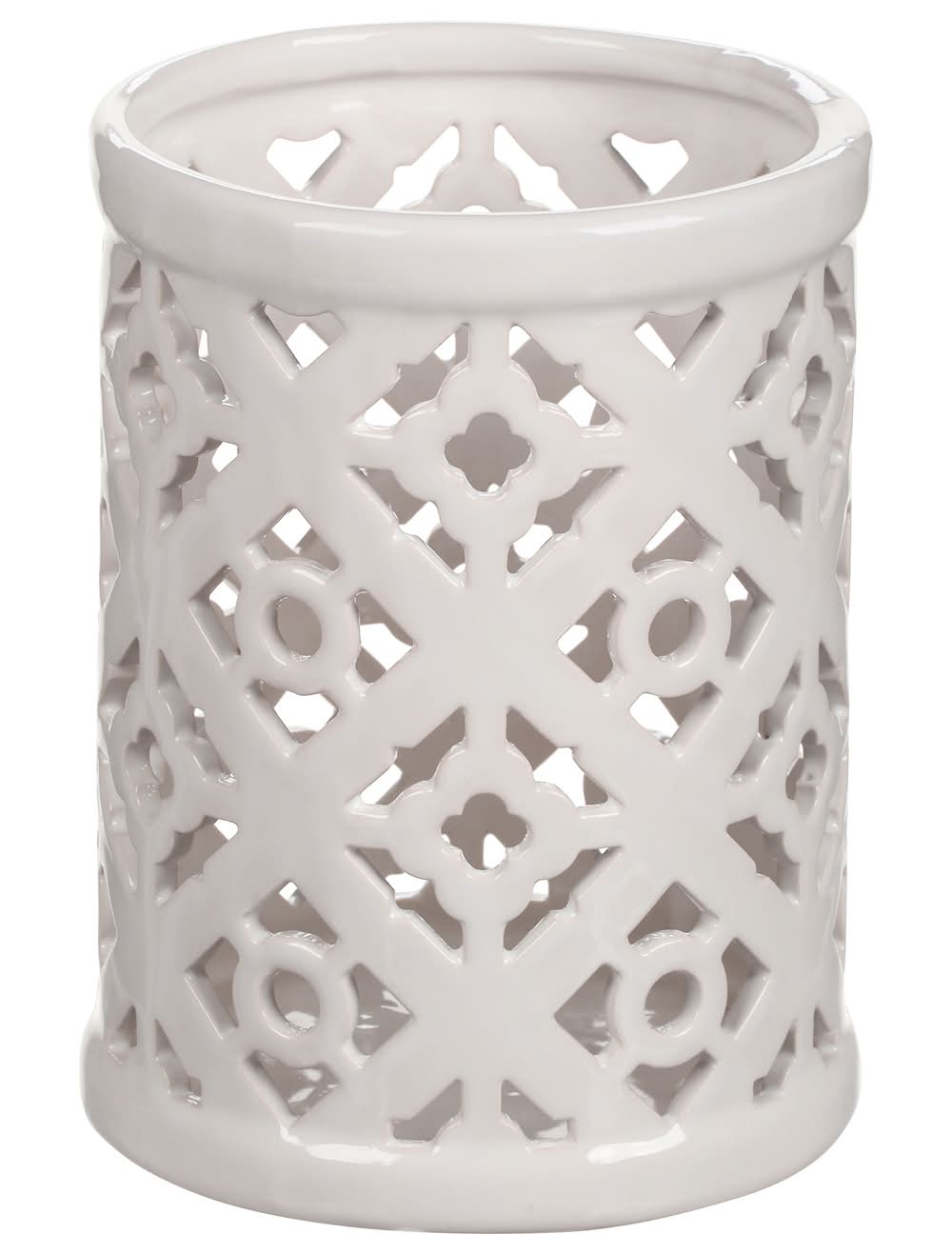 9 Elements Quadrafoil Ceramic Lantern, 6.5 in, White