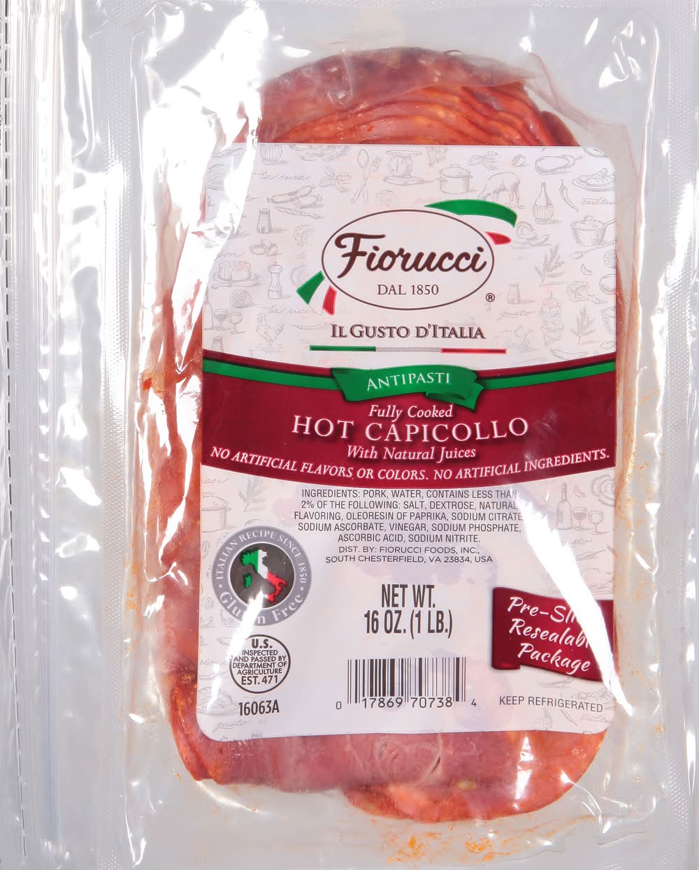 Fiorucci Natural Fully Cooked Hot Capicollo (16 oz, 12 ct)