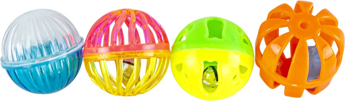 Leaps & Bounds Lattice Ball and Bell Cat Toys, pack Of 4 Balls