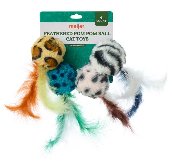 Meijer Safari Furry Balls With Feathers Cat Toy, Assorted (4 ct)