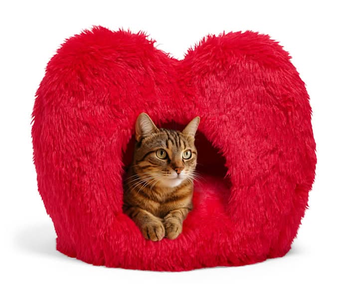 Youly Heart Shaped Hooded Pet Bed, 19x16 in, Red