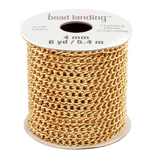 Bead Landing Curb Chain Spool, 5 yard, Gold