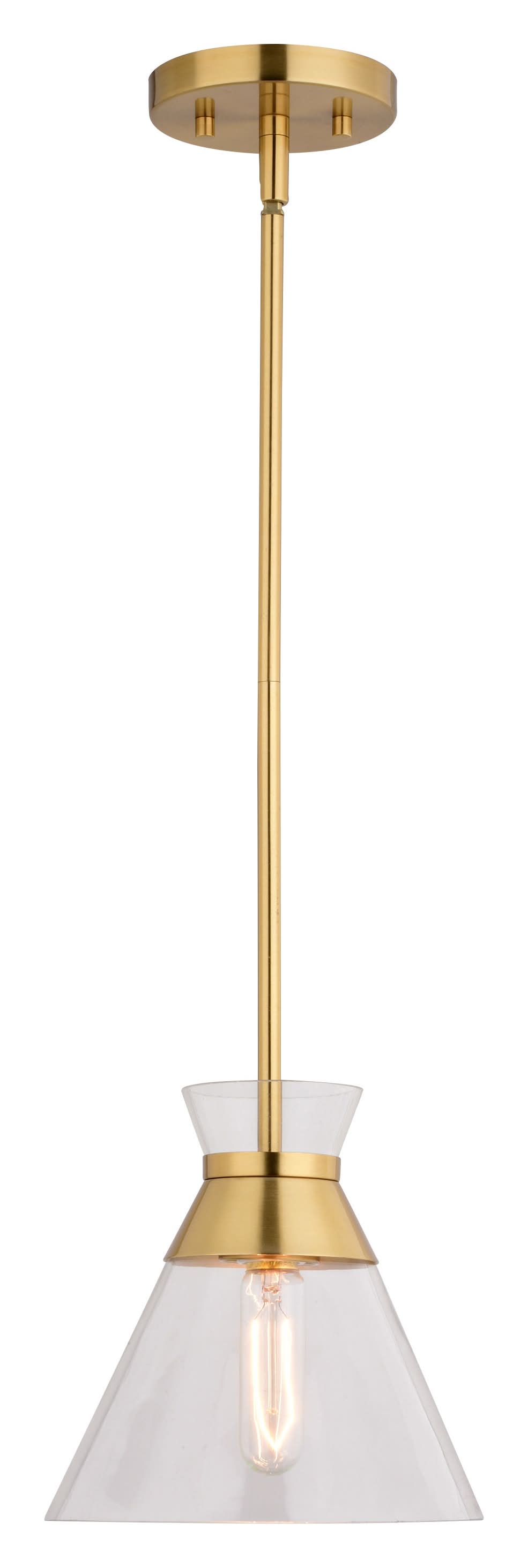 Vaxcel Harper Gold Brass Mid-Century Modern Pendant Light, Clear Glass