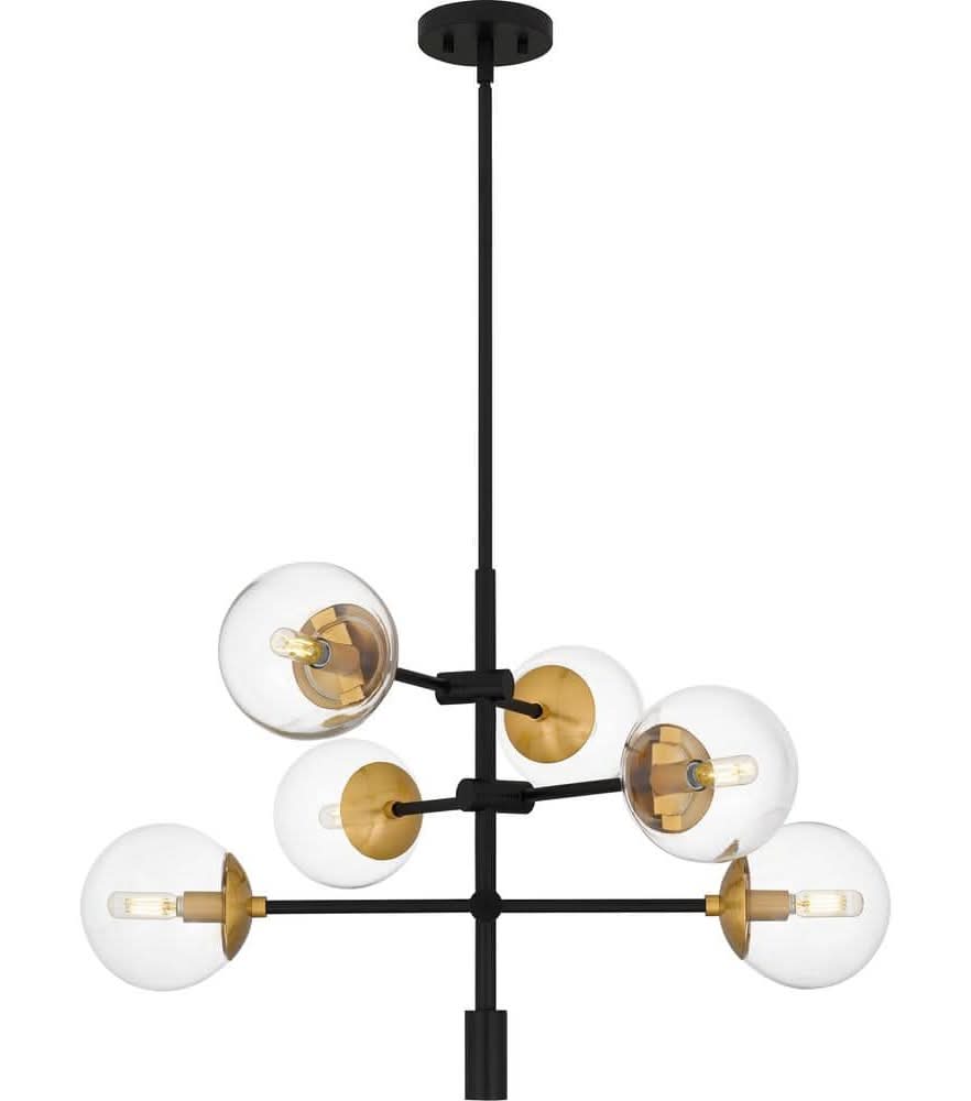 Vaxcel Glencoe Light Multi-Level Chandelier Crackle Glass, Matte Black-Clear (6 ct)