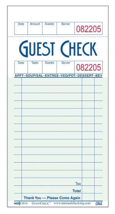 National Checking Medium Single Copy 100 Papers Guest Check (100 ct)
