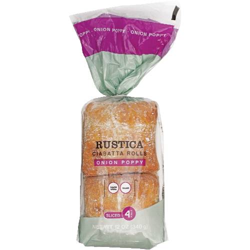 RUSTICA Onion Poppy Sliced Ciabatta Rolls (12 oz, 4 ct)
