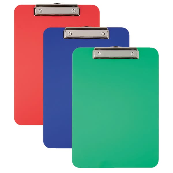 Office Depot Acrylic Clipboard, 9 Inch x 12.5 Inch, Blue-Green-Red (3 ct)