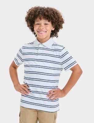 Cat & Jack Jersey Fabric Kids Short Sleeve Printed Polo Shirt, XL, Cream-Blue Striped