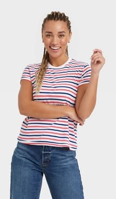 Universal Thread Short Sleeve Crew Neck Pullover T-Shirt, Women, XL, Red Striped