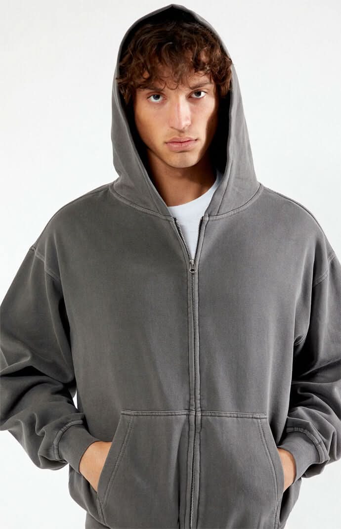 Pacsun Vintage Washed Full Zip Hoodie, Men, XL, Grey