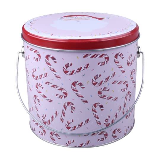 Celebrate It Santa & Candy Canes Cookie Pail, 5.5 In, Red - White