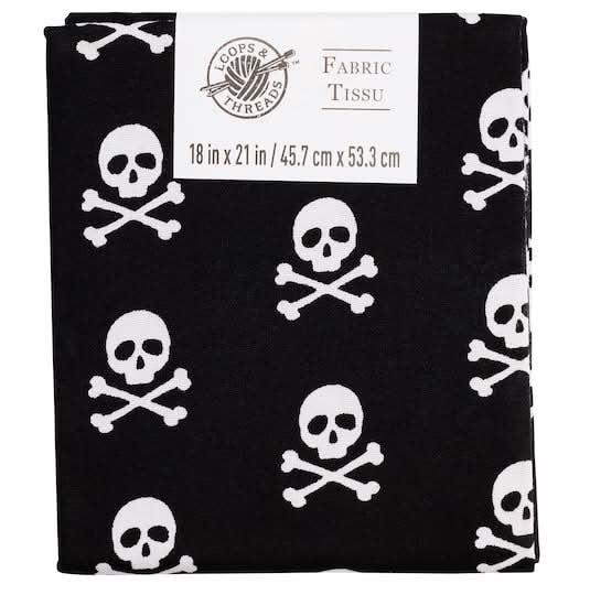 Loops & Threads Skull Fabric, 18" x 21", Black and White