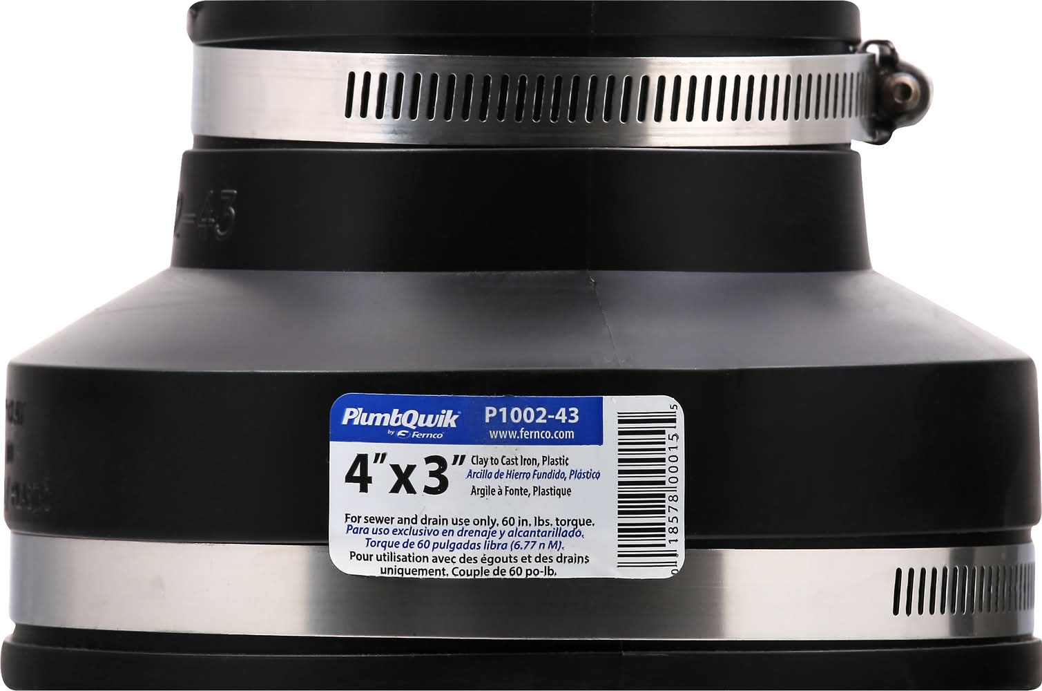 PlumbQwik Clay To Cast Iron Plastic Coupling, 4 Inch, Black