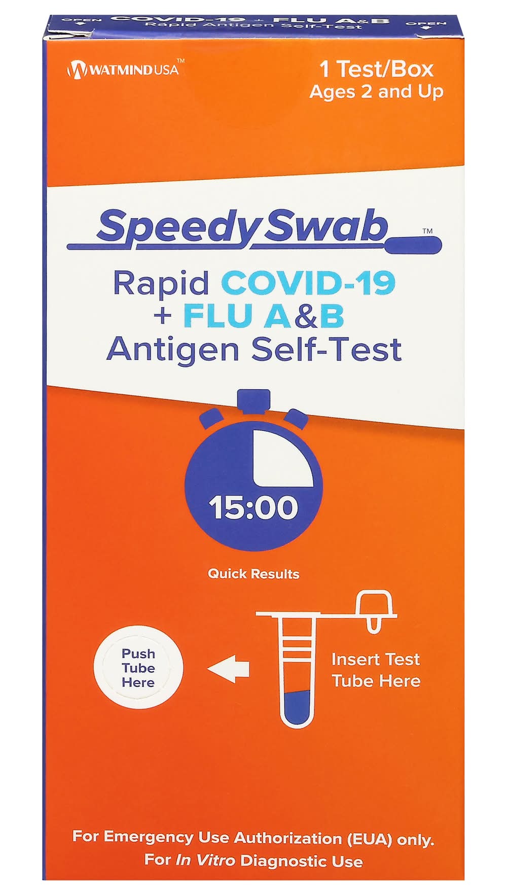 SpeedySwab Rapid Covid-19 + Flu A&B Antigen Self-Test Ages 2+