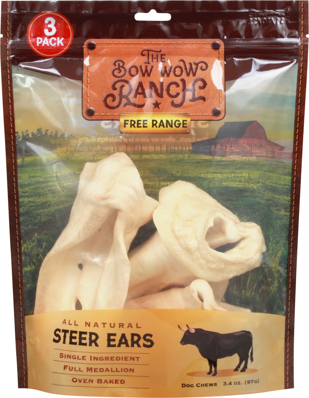 Bow Wow Ranch All Natural Steer Ears Dog Chews (3.4 oz)