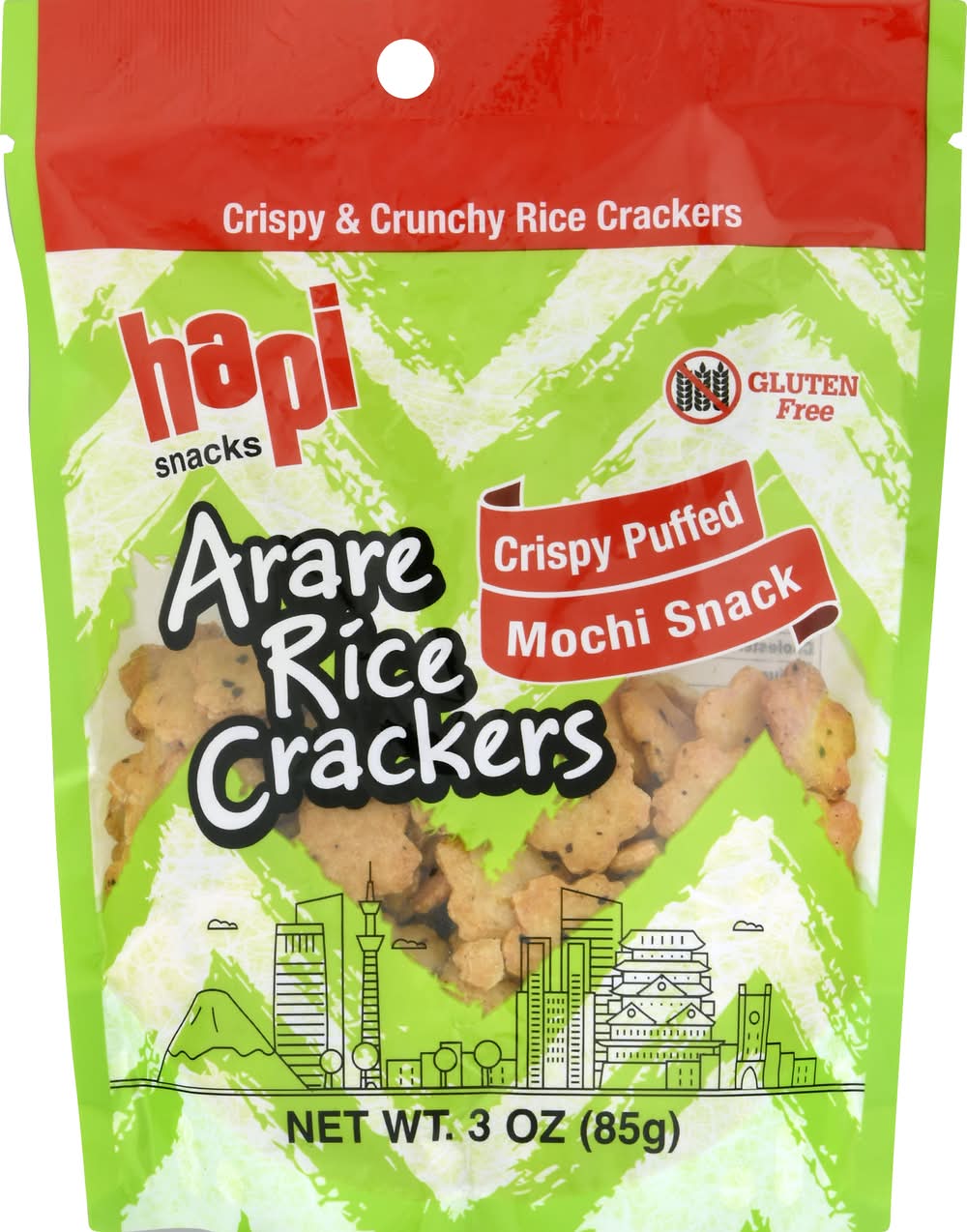 Hapi Arare Rice Crackers Crispy Puffed Mochi Snack (3 oz)