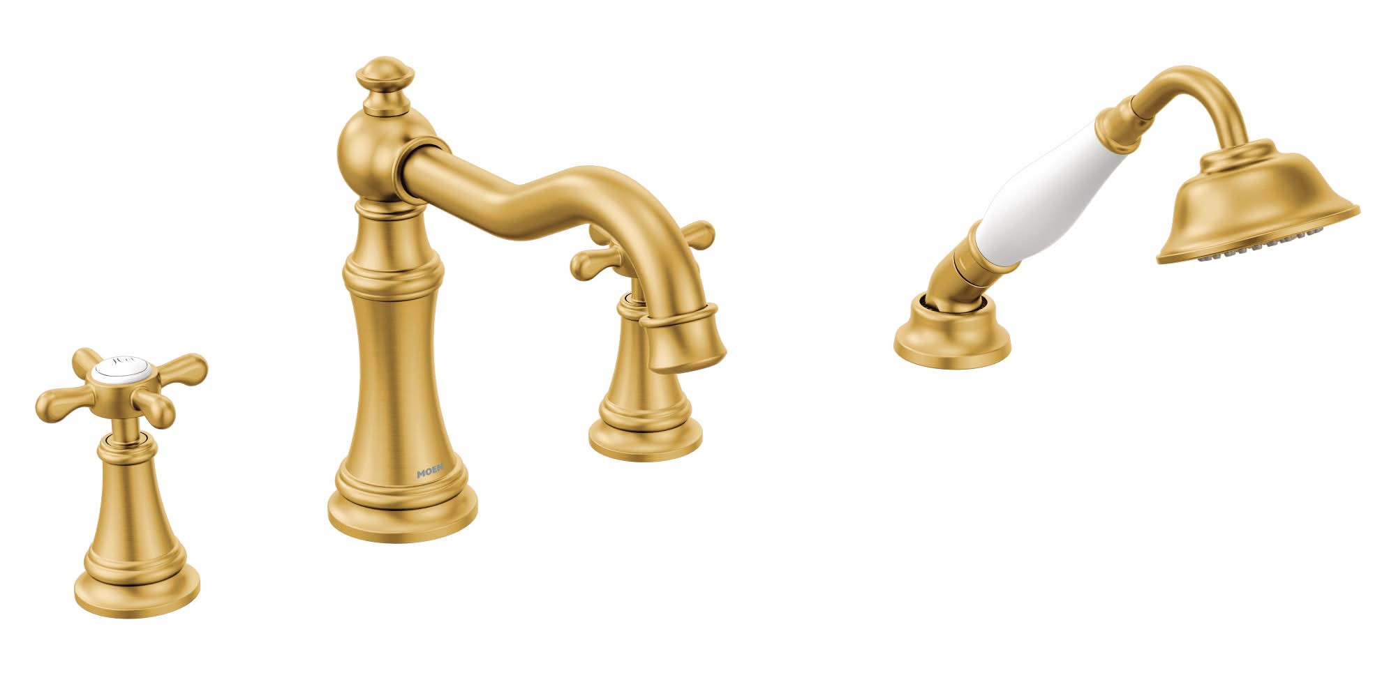 Moen Weymouth Roman Tub Faucet Trim With Cross Handles Brushed Gold