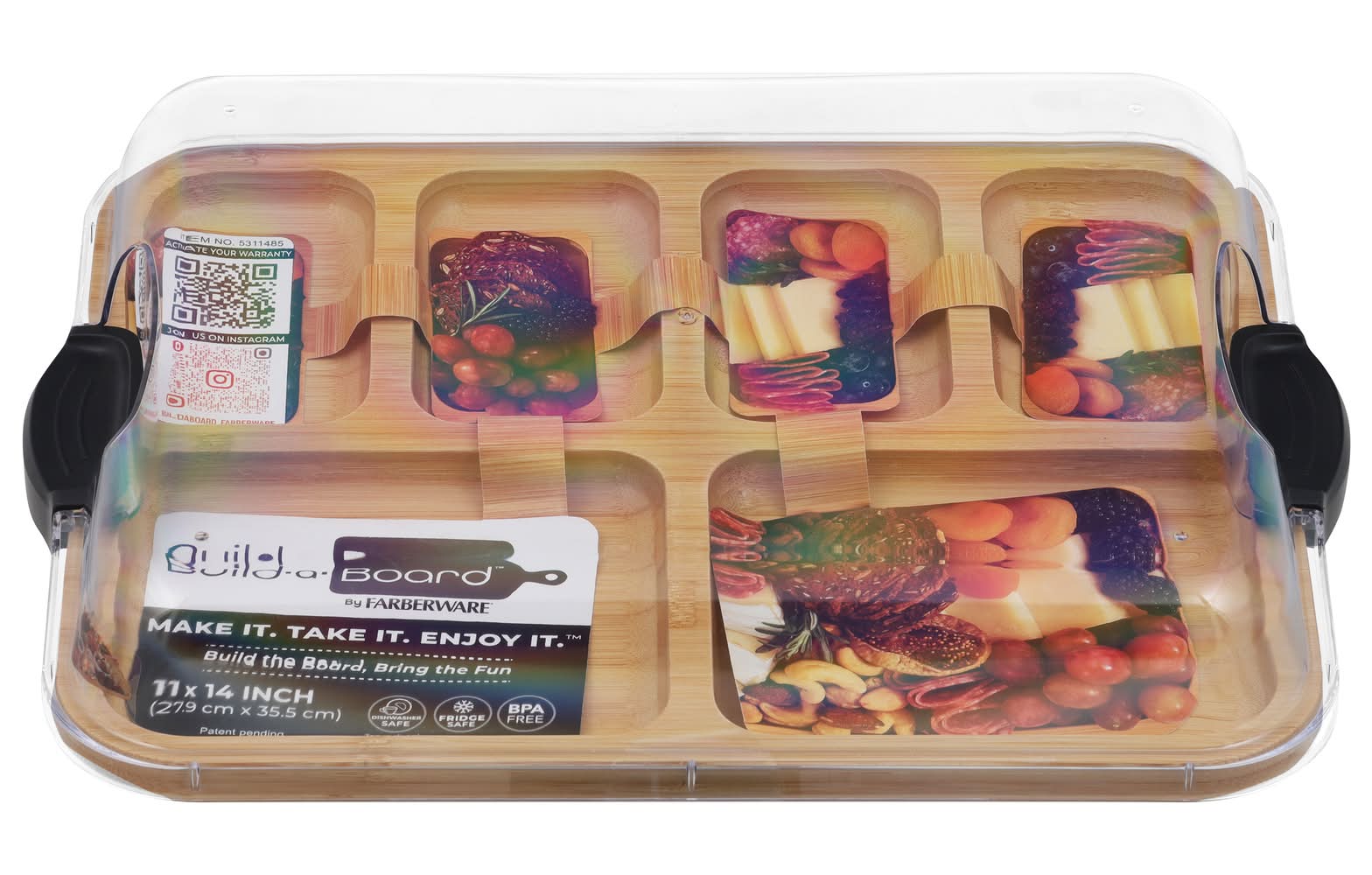 Farberware Bamboo Cutting Board With Locking Lid, 11x14 in