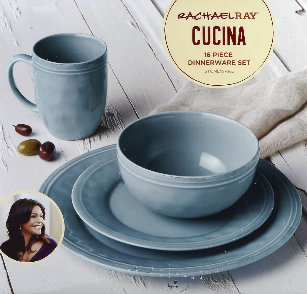Rachael Ray Cucina Dinnerware Set, Sea Salt Grey (16 ct)