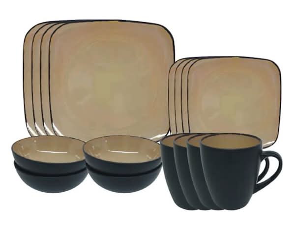 At Home Soft Square Ceramic Dinnerware Set, Taupe (16 ct)