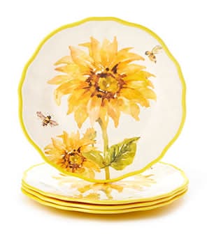 Sunflower & Bee Melamine Dinner Plates (4 ct)