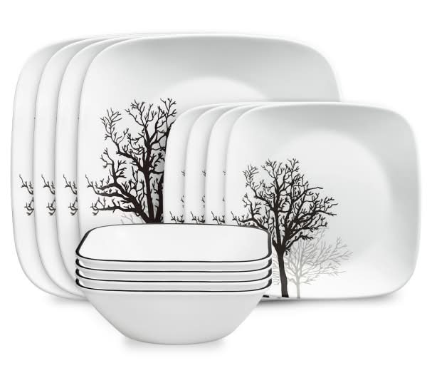 Corelle Timber Shadows Dinnerware Set, White -Black