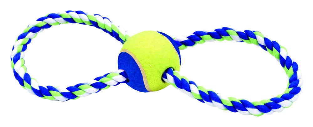 Rascals Figure 8 Rope Tug With Ball Dog Toy, 12"