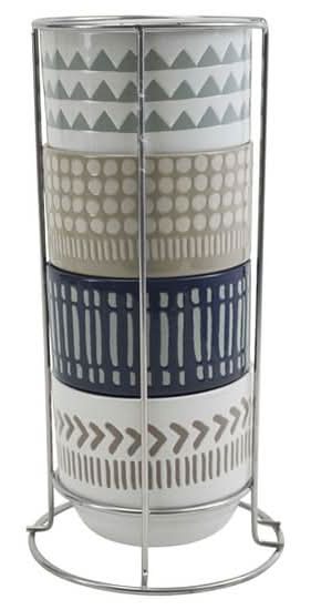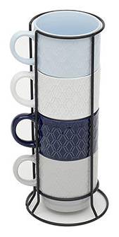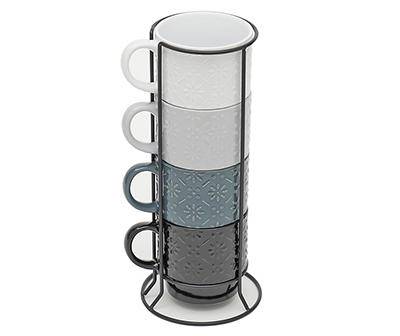 Boston Warehouse Stacking Mugs With Metal Rack, Pastel Geo