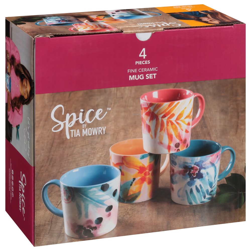 Spice by Tia Mowry Fine Ceramic Goji Blossom Mug Set, Multicolor (4 ct)