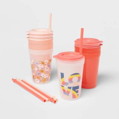 Pillowfort Kids Plastic Drinkware Set, Peach & Melon (18 ct)