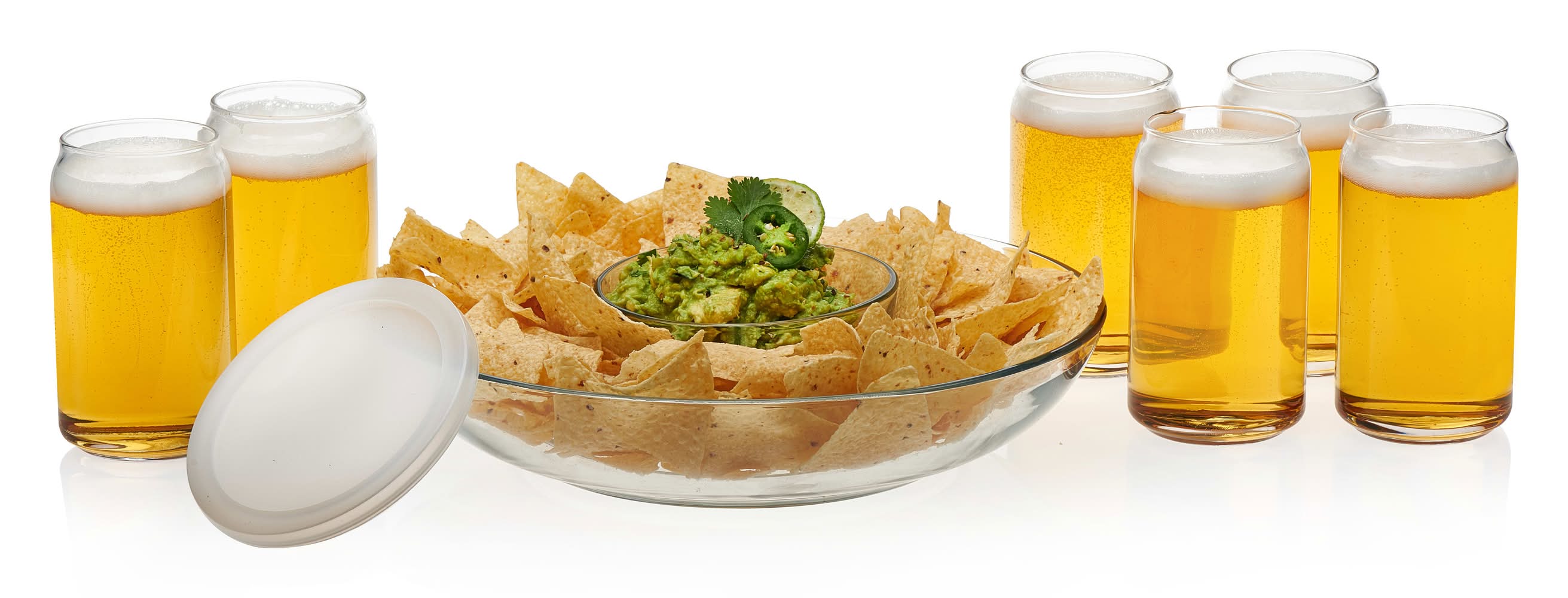 Libbey Game Night Entertaining Set With Classic Tumblers and Chip and Dip Bowls
