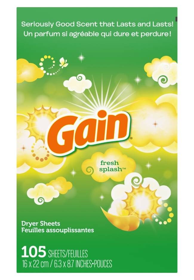 Gain Dryer Sheets, Fresh Splash, 6.3x8.7 in (105 ct)
