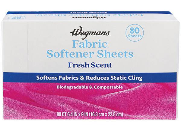 Wegmans Fresh Scent Fabric Softener Sheets, 6.4x9 in (80 ct)