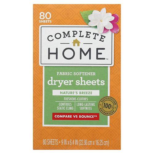 Complete Home Fabric Softener Dryer Sheets, 9 Inx6.4 In (80 ct)
